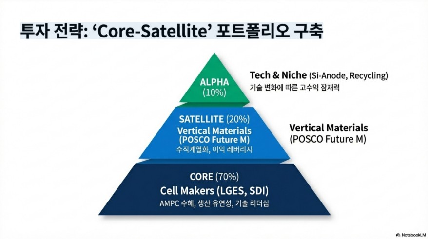 - ALPHA (비중 10%): 차세대 기술(실리콘 음극재, 리사이클링) 등 고수익 잠재력에 투자하십시오.