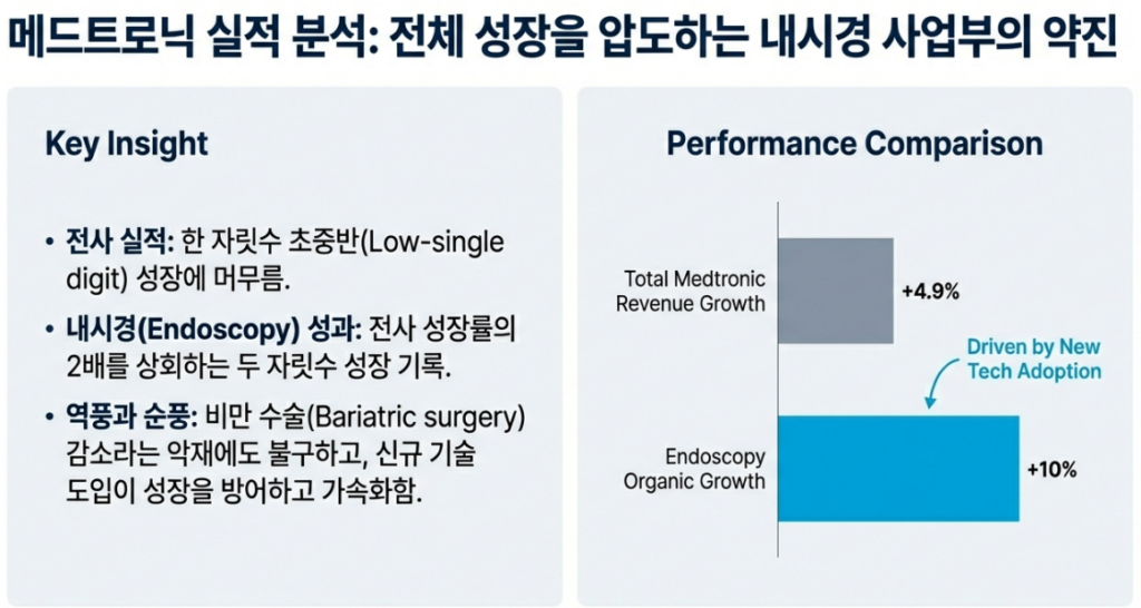 1. 메드트로닉 실적의 ‘신스틸러’: 왜 내시경 부문만 유독 성장했나?